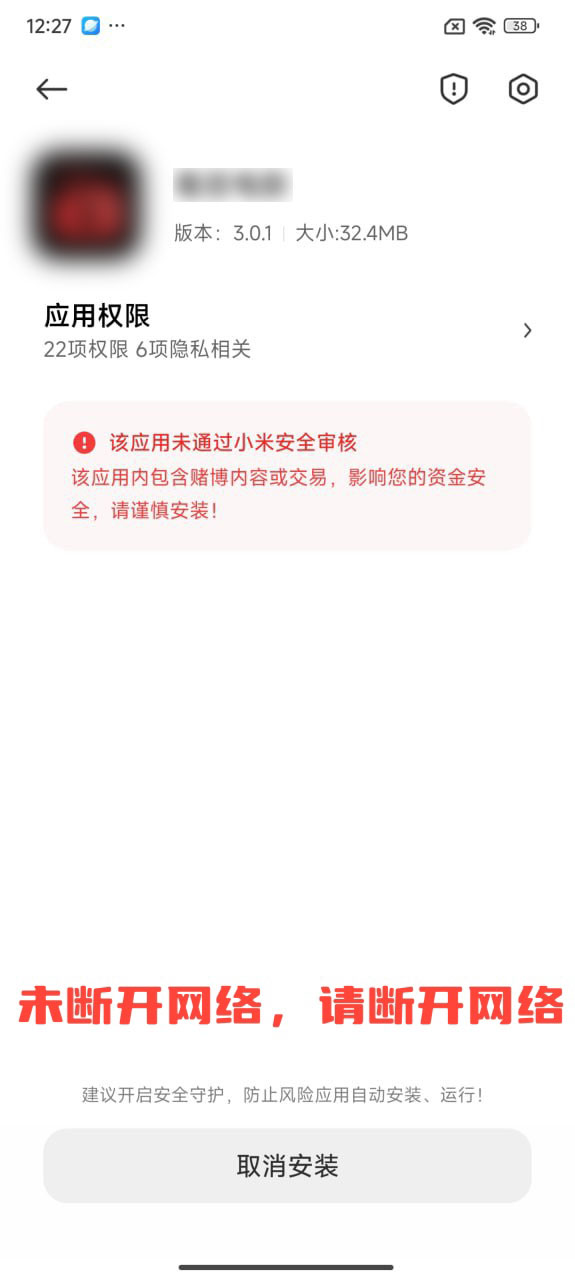 由于各手机厂商的限制,如果安装过程中出现异常,可以尝试以下操作